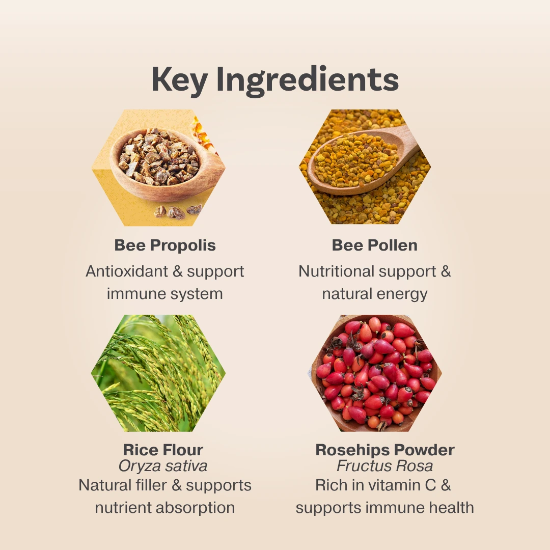 Stay strong and protected with a potent dose of pure bee propolis, carefully harvested to support everyday immunity and long-term wellness.