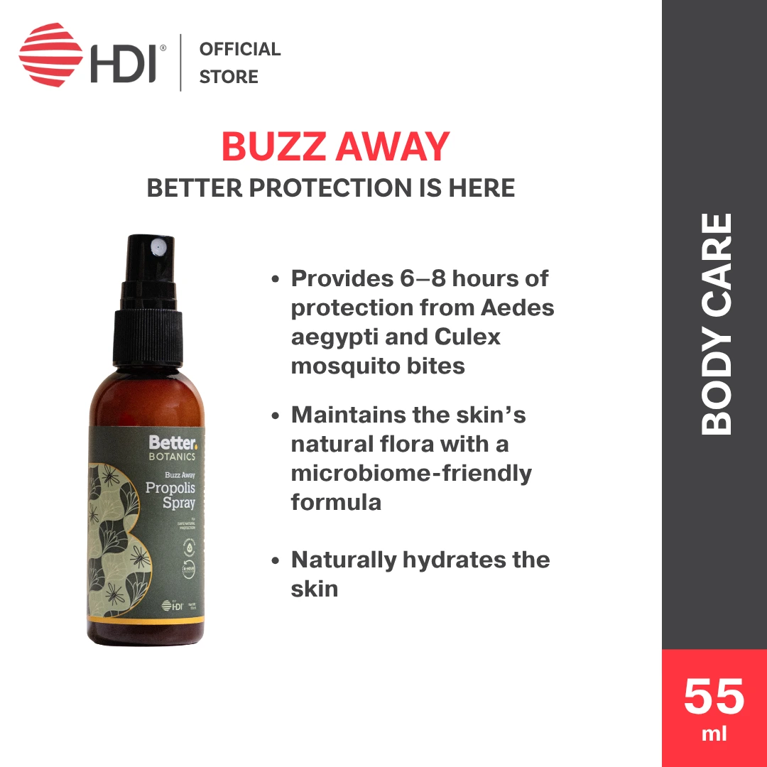 Better Botanics Buzz Away Propolis Spray is a mosquito repellent product that has been clinically tested by the Ministry of Health’s Public Health Laboratory (Labkesmas RI). It is safe for use by the whole family and also helps maintain healthy skin.
