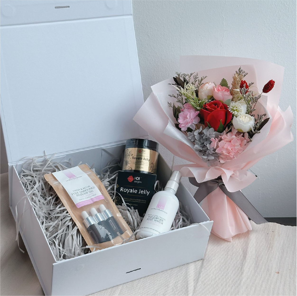 The HDI Bee Loved Set is a romantic wellness gift designed to nourish, glow, and gently say “I care.” A thoughtful blend of beauty-from-within and elegant floral touches — perfect for celebrating her on any special occasion.