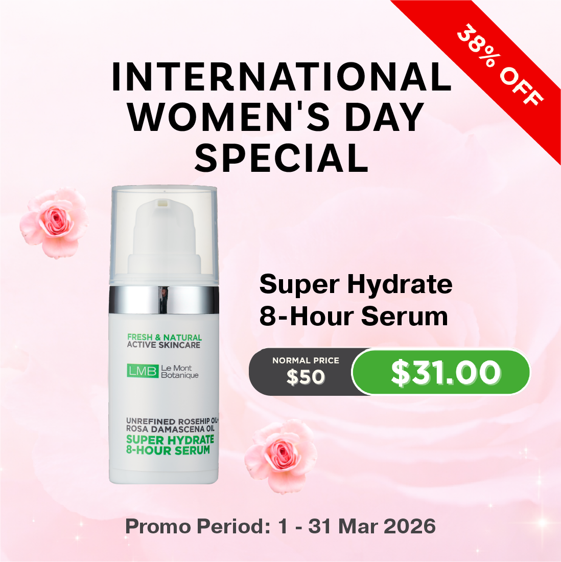 Super Hydrate 8-Hour Serum with Bulgarian Rose Water, Rosehip Seed Oil, Hyaluronic Acid & Jojoba Oil.